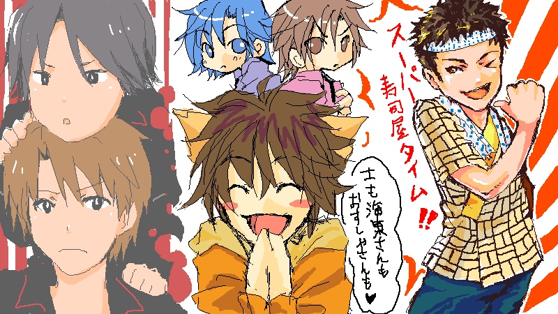 左から、えん吉さんの海東さんと士。真ん中はりゆんさん。上にちんまりいらっしゃるのが、海東さんと士。なんで海東さんだけさんづけなんだろう俺笑。なんとなく…!そしてその下はオリキャラさんだったはず…!まさかWにネコミミキャラとか?…みてみたい(いねえから。)一番右はシンケンジャーのげんちゃんです!