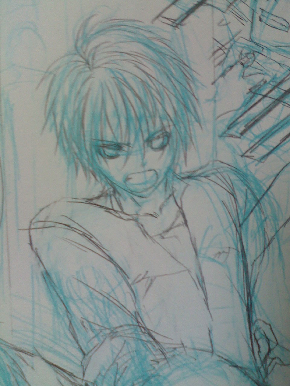 本日一ページ目のポーズが描けなくて、汚くなりはじめてます。
