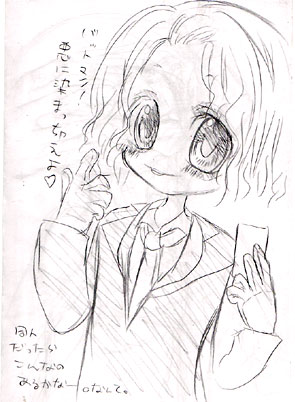 友達のキャラ。交換で描くっていう約束をしたので描いたんですが、首がおかしいよねって事で書き直して友達に渡してきました(今日。)写メとっとけばよかったなあと思いましたYO。